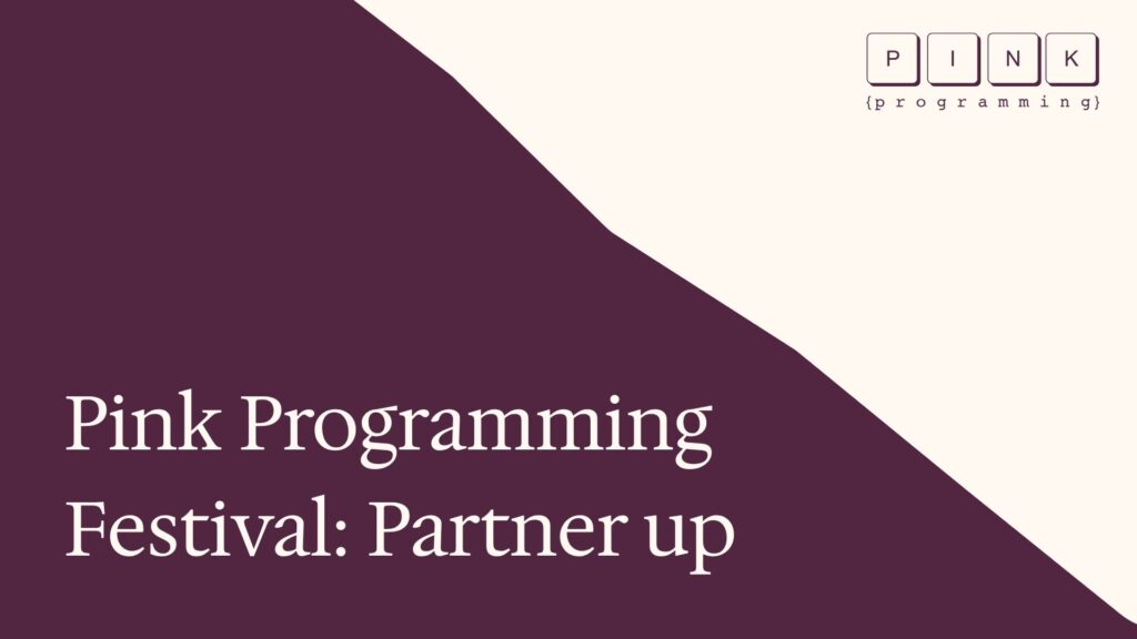 Partner up for the very first Pink Programming Festival — a two-day celebration of inclusion in tech, with talks and sessions featuring industry professionals and partners, and a vibrant space for women and non-binary programmers to code, connect, and get inspired.